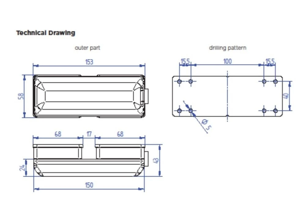 Van door lock dimensions: Width 155mm x Height 60mm and projects from vehicle 40mm