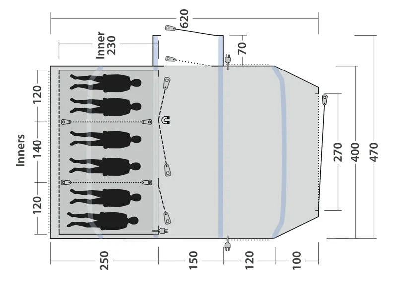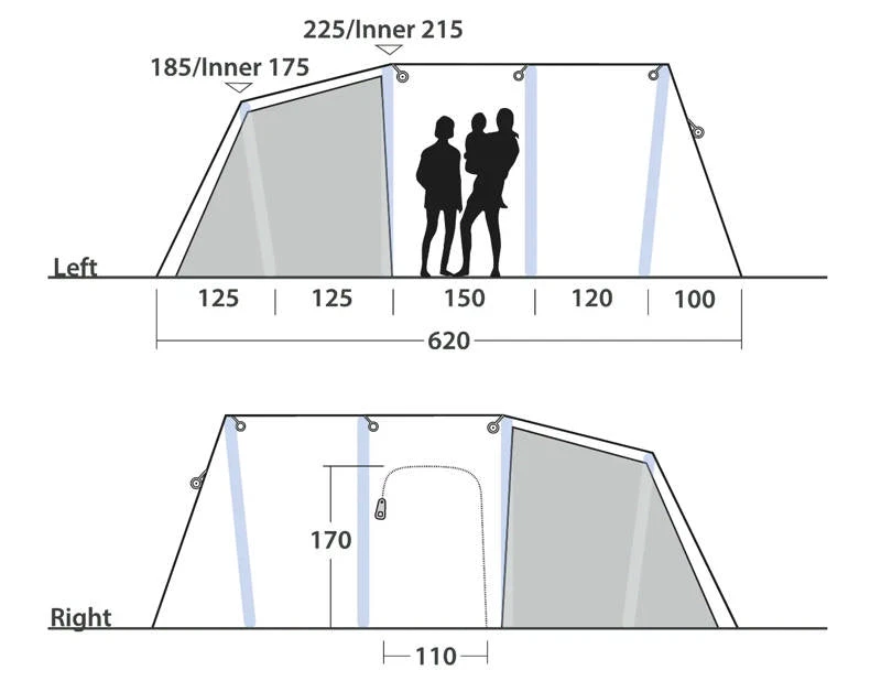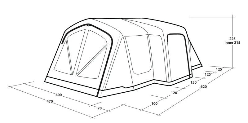 - Reliable, easy-to-operate inflate/deflate valves conveniently placed outside the flysheet