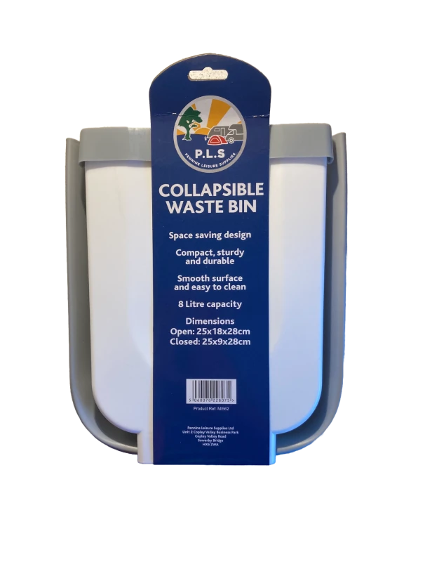 Caravan & Motorhome Waste Bins. Collapsible Waste Bin complete with mounting brackets. Size:285mm Height x 250mm Width x 180mm Depth when open. Depth when closed 90mm.